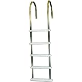 This economical, yet full-featured white A-Frame ladder is great for non-deck above ground pool applications. Our A-Frame ladder provides a safe and secure entry & exit from your above ground pool, featuring 16" tread width and a swing-up outer section to prevent unwanted pool access. The outer treads can also be locked with the included padlock. Fits 48" to 54" deep pools, features snap-lock treads for quick & easy assembly, and accommodates up to 300 lbs. Also features an anti-entrapment barrier to prevent entrapment behind the ladder.